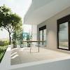 Haus S2 mit einer Nettonutzfläche von 168,42 m2 (Wohnfläche 121,51 m2 + Terrasse 46,91 m2 + Garten + 2 Parkplätze) besteht aus drei Etagen: Erdgeschoss + 1. Etage + 2. Etage. Im Erdgeschoss des Hauses befinden sich ein Eingangsbereich, ein Abstellraum, eine Waschküche, eine Toilette, eine offene Küche mit Esszimmer und ein Wohnzimmer mit Zugang zu einer geräumigen Terrasse von 18,75 m2. Über eine Innentreppe gelangt man in die 1. Etage, wo sich ein Flur, zwei Schlafzimmer mit jeweils eigenem Bad und eine gemeinsame Terrasse befinden. Im 2. Stock gibt es einen Flur, ein Badezimmer, ein Schlafzimmer mit Zugang zu einer Terrasse von 17,31 m2 mit wunderschönem Blick auf das Meer. Zum Haus gehören ein eigener Gartenanteil und zwei PKW-Stellplätze.