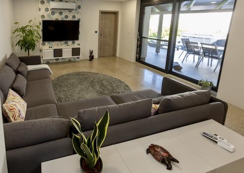Die 50 m2 große Terrassenfläche ist mehr als ausreichend, um eine Familie oder eine Gruppe von Freunden unterzubringen.