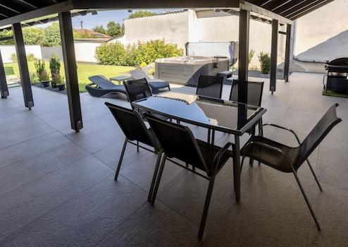 A terasz 50 m2-es területe bőven elegendő család, baráti társaság fogadására is.