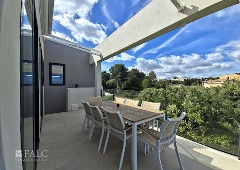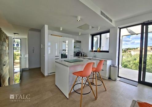 Zur hochwertigen Ausstattung zählen u.a. Glasfaser-Internet, Aluminium-Schiebefenster mit Doppelverglasung, elektrische Rollläden in den Schlafräumen, Klimaanlagen, Fußbodenheizung, Kamin und eine Alarmanlage. Die Fassade wurde 2023 frisch renoviert.