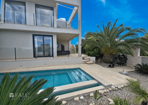 Die Villa bietet eine begehrte Lizenz zur Ferienvermietung für bis zu 8 Personen und ist mit einer modernen Photovoltaikanlage sowie einem eleganten 7 x 3 Meter großen Pool mit Wasserfall ausgestattet – ideal für entspannte Stunden unter der mallorquinischen Sonne.