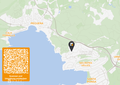 Costa de la Calma bietet alle notwendigen Annehmlichkeiten in fußläufiger Entfernung, darunter Supermärkte, Restaurants, Bars und medizinische Einrichtungen. Zudem profitiert die Immobilie von einer ausgezeichneten Verkehrsanbindung, mit schneller Anbindung an die Autobahn Richtung Palma und Puerto Andratx in nur zwei Minuten sowie der Nähe zum malerischen Strand Cala Blanca.