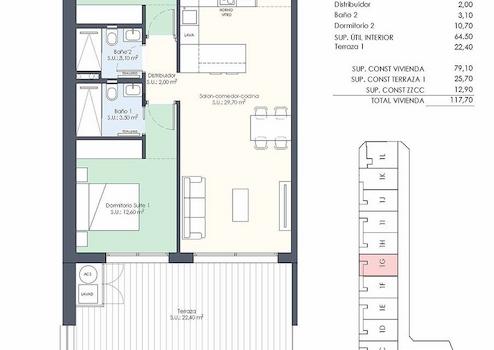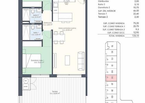 Diese modernen Wohnungen verfügen über eine konstruierte Fläche von ca. 97 m² - 123 m² (verschiedene Modelle, inkl. Terrassen) mit