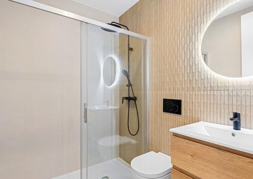 Zur hochwertigen Ausstattung der Wohneinheiten gehören unter anderem Vorinstallation Klimaanlage, PVC- oder Aluminium-Fenster mit Doppelverglasung, Sicherheitstüren, moderne Einbauküche mit Dunstabzugshaube, elektrische Rollläden, Video-Gegensprechanlage, Einbauschränke in den Schlafzimmern sowie Badezimmer mit Möbeln, Spiegeln und Duschtrennwänden. Tiefgaragenstellplätze und Abstellräume können optional erworben werden.