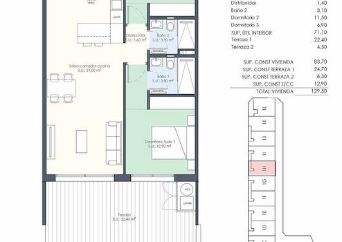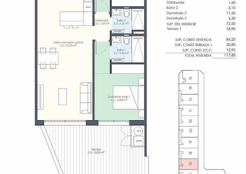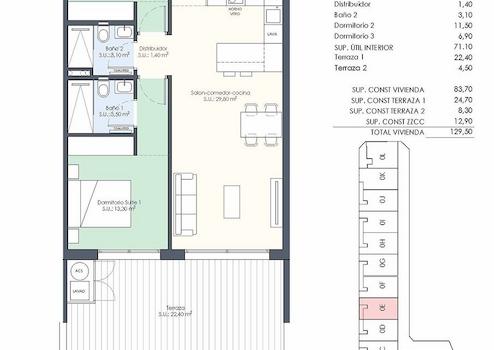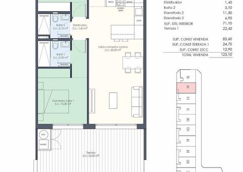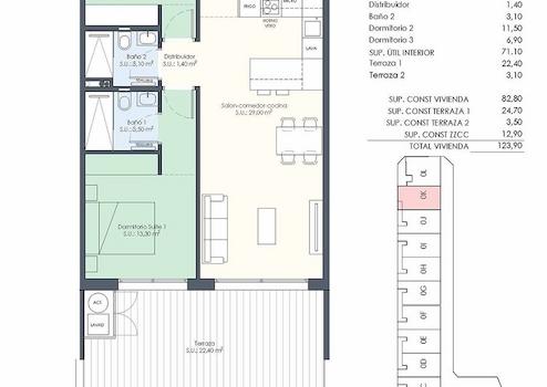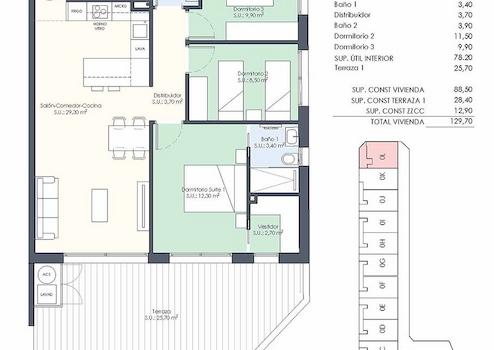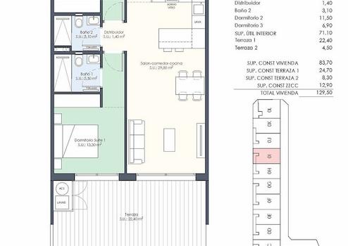 Diese modernen Wohnungen verfügen über eine konstruierte Fläche von ca. 118 m² - 154 m² (verschiedene Modelle, inkl. Terrassen) mit