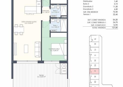 Die Wohnungen befinden sich in ruhiger Lage am Ortsrand von Benijófar, nur ca. 600 m von den nächstgelegenen Einkaufsmöglichkeiten, Bars und Restaurants, nur zehn Minuten vom La-Marquesa-Golfplatz in Ciudad Quesada, nur fünfzehn Minuten von den wunderschönen und kilometerlangen Stränden bei Guardamar del Segura - ausgezeichnet mit der Blauen Flagge, dem Gütesiegel für Strände in Europa - und nur 15 Minuten von den Salzseen des Naturparks von La Mata entfernt.