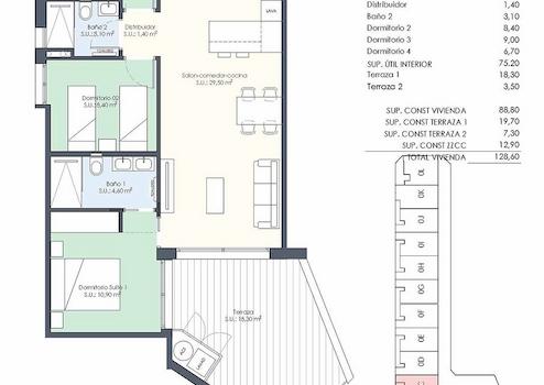 Diese modernen Wohnungen verfügen über eine konstruierte Fläche von ca. 122 m² - 129 m² (verschiedene Modelle, inkl. Terrassen) mit