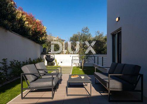 INSEL KRK, STADT KRK - zweistöckige Wohnung mit Garten und Swimmingpool in Meeresnähe. Die 118 m2 große Wohnung besteht aus einem Vordereingang, einem größeren Aufenthaltsraum mit Zugang zu einer großen überdachten Terrasse, einem Schlafzimmer mit Bad, einem Flur, einem zusätzlichen Bad und einem Abstellraum sowie einer Innentreppe im Erdgeschoss Gebäude. Im ersten Stock befinden sich zwei Schlafzimmer, ein Flur, ein Badezimmer, ein geräumiges Wohnzimmer mit Küche und ein Esszimmer mit Zugang zu einer großen überdachten Terrasse mit Blick auf das Meer. Technische Merkmale: hochwertige Bauweise und hochwertige Ausstattung, PVC-Zimmerei mit dreischichtigem Glas, Aluminium-Rollläden mit elektrischer Regulierung, alle Räume klimatisiert mit einem Multisplit-System, Fußbodenheizung in den Bädern, erstklassiges Parkett und keramische Bodenbeläge, einbruchhemmende Türen. Dekorierter Gartenbereich von 157 m2 mit einem Swimmingpool von 22 m2 sowie einer Sonnenterrasse und Sommerküche. Zur Wohnung gehören zwei Parkplätze. Die Entfernung zum Meer und zum Zentrum beträgt ca. 600 Meter. DIE STADT KRK ist heute das administrative, politische, wirtschaftliche und religiöse Zentrum der Insel Krk, die durch ihr repräsentatives mittelalterliches Erbe fasziniert. Es entstand während der venezianischen Herrschaft in diesen Gebieten. In dieser Zeit ragten insbesondere die Frankopani-Fürsten von Krk heraus, denen es durch geschickten politischen Flirt mit Venedig gelang, mehrere Jahrhunderte in Krk zu bleiben. Heute kennen wir Krk als Touristenziel mit außergewöhnlichem kulturellem und künstlerischem Erbe, wo die antike Splendidissima Civitas Curitarum (die prächtige Stadt der Einwohner von Krk) im Einklang mit dem geschäftigen Charakter der Neuzeit lebt. Die ideale geografische Lage ist ein Vorteil, den die Insel Krk als Tourist früher sehr schätzte. Wir sprechen von der Nähe zum Festland, zu dem vor zwanzig Jahren eine Brücke hinzugefügt wurde, die Krk mit dem Festland verbindet und es so noch besser zugänglich macht. Die gute Verkehrsanbindung hat die Insel Krk zu einem beliebten Ausflugsziel gemacht, aber auch umgekehrt: Von der Insel aus lassen sich sinnvolle Tagesausflüge unternehmen. Zum Beispiel ein Ausflug in die Nationalparks Plitvicer Seen und Nordvelebit. Wahre Entdecker werden auf jeden Fall Rijeka – das Zentrum der Gespanschaft Primorsko Goranska – kennenlernen wollen und ihren Aufenthalt in Rijeka mit einem unvermeidlichen Besuch in Opatija – der touristischen „Perle der Adria“ – verbinden. Ein Tagesausflug nach Istrien wird sehr interessant sein. Wir empfehlen Ihnen, im zentralen Teil Istriens zu übernachten und nicht an der Küste! Schließlich ist die Insel Krk durch eine Fährlinie mit drei Inseln verbunden: Rab, Cres, Lošinj, die auch Ziele für Ihre Tagesausflüge sein können. Kehren Sie niemals von der Goldenen Insel zurück, bevor Sie nicht selbst die Trümpfe gesehen haben, die ihr aus der Zeit des Römischen Reiches diesen schmeichelhaften Namen eingebracht haben. Genießen Sie den köstlichen Geschmack von Kvarner-Fisch und den berühmten Kvarner-Garnelen. Zum Insellamm verraten wir Ihnen, dass es am Hofe der römischen Kaiser serviert wurde, wir glauben, dass dies eine ausreichende Empfehlung ist. Das Meer auf der Insel Krk ist extrem sauber! Dieser Anspruch wird am besten durch die sechs blauen Flaggen untermauert, die die Strände der Stadt Jahr für Jahr verdienen, indem sie die hohen Kriterien der Meeresqualität erfüllen, und dann durch die Angebote: Sanitär, Gastronomie, Sport, Freizeit, mit dem obligatorischen Hinweis, dass die Strände zugänglich sind zum Meer für Behinderte eingerichtet. In der Stadt, in der Gegend von Dražica, gibt es einen Strand für Hunde, einen separaten Bereich zum Baden von Hunden, die in der Sommerhitze nach Erfrischung schreien. Die Sauberkeit des Meeres an den Stränden ist unter anderem darauf zurückzuführen, dass es sich bei den Stränden um Kies- oder Felsstrände mit gut ausgestatteten Liegewiesen handelt. Wenn Sie Lust auf Erkundungen und Intimität haben und gleichzeitig wissen, wie man ein Schiff steuert, suchen Sie im Stadthafen nach Mietbooten. Die Küste der Insel in unmittelbarer Nähe der Stadt ist eine Fundgrube versteckter, intimer Kieselbuchten, die zumindest für einen Tag zu Ihrem Privatstrand werden können. Sehr geehrte Kunden, die Agenturprovision wird gemäß den Allgemeinen Geschäftsbedingungen www.dux-nekretnine.hr/opci-uvjeti-poslovanja berechnet