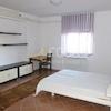 Sie besteht aus einem Schlafzimmer, einer Küche mit Wohnzimmer, einem Flur und einem Badezimmer.