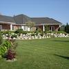 A ház kertjében öntözőrendszer lett kiépítve, 3 kerti csappal, külön vízórával a locsoláshoz, kerítése 220 m hosszúságban, 220 cm magasságban tömör tégla, amely megőrizi a kert intimitását.