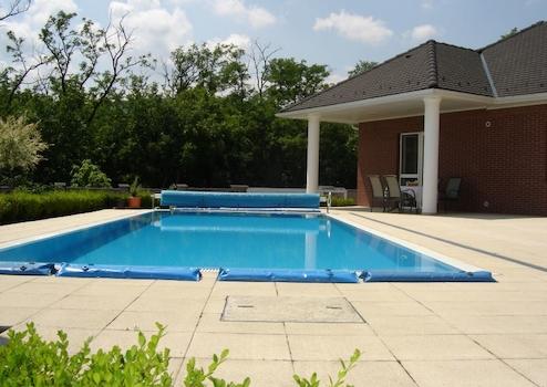 A kiépített napkollektor gondoskodik a medence fűtéséről és a melegvízről is.