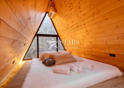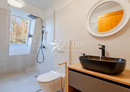 Die oberen Etagen bieten drei weitere Schlafzimmer mit Badezimmern und einen besonders beeindruckenden Dachboden mit Panoramafenstern. Hier wird die Natur nicht nur betrachtet—sie wird gelebt.