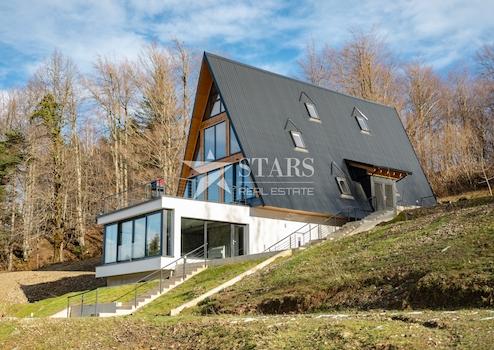 Auf einem ruhigen Hügel nahe Delnice gelegen, präsentiert sich diese architektonisch durchdachte Villa als wahres Juwel auf dem Immobilienmarkt. Auf einem 1.088 m² großen Grundstück bietet die Immobilie vollständige Privatsphäre und atemberaubende Ausblicke auf unberührte Natur, wobei Luxus, Funktionalität und Umweltbewusstsein harmonisch vereint werden.