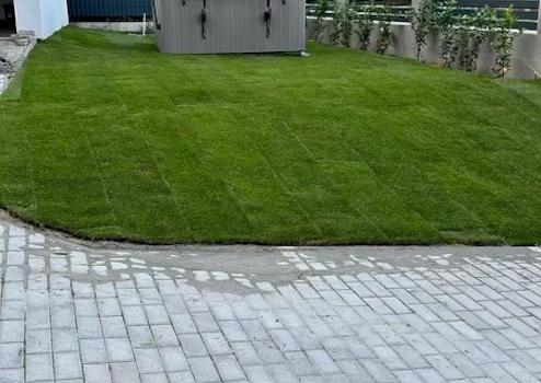 Zum Familienhaus gehört ein eigenes Grundstück mit einem Bewässerungssystem im angelegten Garten.