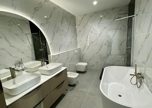 ▪ Bugnatese Premium-Armaturen, offene Dusche und Badewanne in den Badezimmern