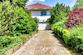 A kerti autó behajtó motorizált nyíló kertkapukkal rendelkezik, belül 3 autó számára burkolt autóparkoló.