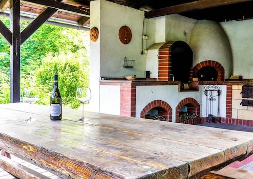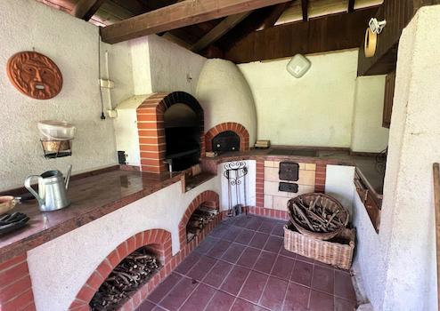Über dem 150 Jahre alten Keller ist eine überdachte Sommerküche errichtet (Backofen, Grill, Herd, Essbereich für 14-16 Personen).