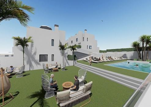 Diese Häuser sind mit 2 oder 3 Schlafzimmern verfügbar und verfügen jeweils über ein privates Solarium mit Sommerküche, Terrassen, Innenhöfen und Privatparkplätzen.
