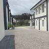 Die vordere Hälfte des Hofes ist mit Kies gepflastert und bepflanzt, während der hintere Teil die Möglichkeit für einen grasbewachsenen Entspannungsgarten bietet. Sowohl im Außen- als auch im Innenbereich wurde eine durchdachte Lichttechnik verbaut. Das Erscheinungsbild des gesamten Anwesens ist einheitlich und harmoniert sowohl mit den Innenräumen als auch mit dem Innenhof und der Fassade des Hauses.