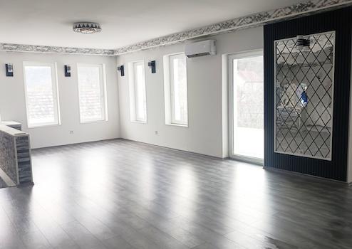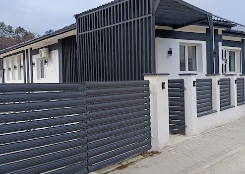 Über einen Pergola-Eingang gelangt man in die erste Etage des Hauses, wo sich ein riesiges Esszimmer, ein Wohnzimmer, eine geräumige offene Küche und 3 Schlafzimmer sowie ein beeindruckendes Badezimmer mit Toilette befinden. Vom Wohnzimmer aus gelangt man auf die große Terrasse, die zusätzliche Möglichkeiten zur alltäglichen Entspannung, zum Komfort und zum Genießen der Schönheit der Landschaft bietet. Dank der vielen Fenster ist das Haus den ganzen Tag hell und sonnig.
