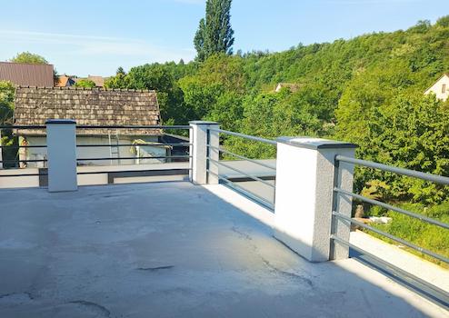 A 300 nm-es, 2 szintes, dupla teraszos, dupla komfortos, modern és elegáns családi ház Bajót csendes, jó lakóközösségében, a falu közepén található utcában épült B30-as téglából.