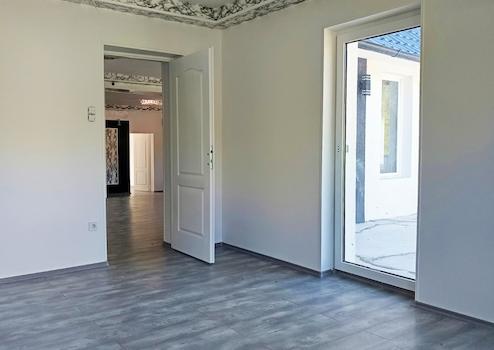 Alles entspricht den heutigen Ansprüchen, so ist es innen und außen isoliert, mit neuen Kunststofffenstern und -türen ausgestattet, die Gemeinschafts- und Badezimmerbereiche sind mit Fliesen in Marmoroptik ausgelegt und die Schlafzimmer sind mit hochverschleißfestem Laminatboden ausgelegt. Das Anwesen wurde mit hochwertigen Materialien gebaut, was sich auch in der Innenausstattung widerspiegelt. Sie müssen eigentlich nur noch einziehen, das gesamte Haus ist bereit für den neuen Bewohner.