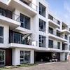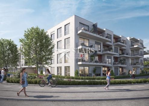 Das Projekt umfasst vier Eingänge und insgesamt 122 Wohneinheiten, die über Aufzüge und Treppenhäuser miteinander verbunden sind. Erdgeschosswohnungen verfügen über private Gärten für zusätzlichen Komfort.