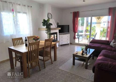 Gleich zwei Wohnzimmer und zwei voll ausgestattete Küchen schaffen Raum für gemeinsames Leben – oder ermöglichen eine getrennte Nutzung von Haupt- und Gästehaus. Einbauschränke, Klimaanlage, Kamin und Doppelverglasung sorgen ganzjährig für ein angenehmes Wohnklima.