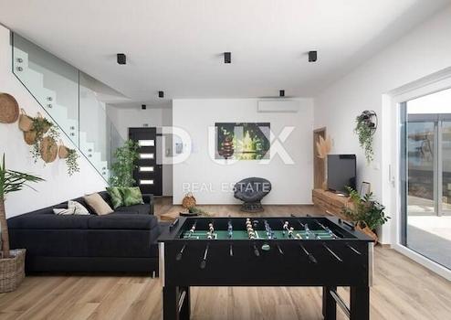 Wir präsentieren stolz diese einzigartige und unwiederholbare Villa in einem ruhigen Wohnviertel der Siedlung Pomer. Dies ist eine Villa an einem Standort, der einen der schönsten Ausblicke auf das offene Meer bietet und gleichzeitig nur wenige Minuten mit dem Fahrrad oder Auto von gepflegten Stränden, Promenaden und allen Annehmlichkeiten des täglichen Lebens entfernt ist. Nutzen Sie diese Chance und werden Sie stolzer Besitzer einer einzigartigen Immobilie, die Sie immer wieder verzaubern wird. BESCHREIBUNG DER VILLA: Die Villa verfügt über 195 m² Wohnfläche, aufgeteilt auf zwei Etagen, Erdgeschoss und erster Stock. Beim Betreten des Erdgeschosses der Villa befinden wir uns in einer eleganten Lobby mit einem ausgewiesenen Platz für eine Garderobe und einem kleinen Abstellraum. Über dieselbe Lobby gelangen wir dann in den Wohnbereich, der im „Open Space“-Stil ohne Trennwände gestaltet ist. Durch hohe Decken und einen luxuriös offenen Ausblick, der von fast jedem Zimmer der Villa aus zu erreichen ist, entsteht ein Gefühl von höchstem Luxus und ein Gefühl der unendlichen Verbindung zwischen den Zimmern der Villa und ihrem Garten und der Landschaft. Im Wohnbereich der Villa haben Sie die Möglichkeit, Ihre Zeit im Wohnzimmer zu verbringen. Es ist groß, wurde gezielt für maximalen Komfort und Funktionalität konzipiert und eignet sich perfekt zum Entspannen bei Ihrer Lieblingsserie oder Ihrem Lieblingsfilm. An das Wohnzimmer schließt sich eine gut ausgestattete und moderne Küche mit Kochinsel an, die harmonisch in das Esszimmer übergeht, das Platz für die ganze Familie bietet. Mithilfe größerer Glasschiebewände erweitert sich der Wohnraum fast kontinuierlich hin zur halbüberdachten Außenterrasse mit Sitzgelegenheiten und Esstisch. Da die Eigentümer die Villa als Privatbesitz errichtet haben, wurde großer Wert auf die Funktionalität der Räume und die Einfachheit des Aufenthalts in der Villa gelegt. So befinden sich im Erdgeschoss der Villa auch eine Gästetoilette, ein zusätzlicher Abstellraum unter der Treppe mit Technikraum sowie das erste von insgesamt drei Schlafzimmern. Dieses Schlafzimmer verfügt über ein eigenes Badezimmer und das Besondere daran ist, dass Sie morgens mit den ersten Sonnenstrahlen vom Bett aus einen wunderschönen Blick ins Grüne und auf das Meer genießen können. Natürlich gibt es auch eine kleine Terrasse, auf der Sie Ihren Morgenkaffee genießen können, sowie Zugang zum Garten und zum Swimmingpool. Über eine Innentreppe gelangt man in das Obergeschoss der Villa, wo sich zwei weitere Schlafzimmer mit jeweils eigenem Bad befinden. Eines davon hat zudem Zugang zu einem Balkon mit dem gleichen, fast einmaligen Blick auf das Meer. Auf dieser Etage befindet sich außerdem ein zusätzlicher Raum, der derzeit als privater SPA-Bereich mit Fitnessstudio genutzt wird und Zugang zum oben erwähnten Balkon hat. Dieser Raum kann problemlos in einen separaten Büroraum, ein Spielzimmer, ein zusätzliches Schlafzimmer oder etwas Ähnliches umgewandelt werden. BESCHREIBUNG DES GARTENS: Die Villa befindet sich auf einem Grundstück von insgesamt 991 m², von denen 766 m² ein angelegter Garten sind. Der Hof der Villa ist komplett eingezäunt und bietet Ihren jüngsten Familienmitgliedern und Haustieren somit unbeschwertes Spielen und Spaß. Der Innenhof der Villa ist mit mediterranen Pflanzen geschmückt, die den Aufenthalt im Freien noch angenehmer machen. Wir müssen unbedingt darauf hinweisen, dass sich unter der bereits erwähnten teilweise überdachten Terrasse ein komfortables 45 m² großes Gezeitenbecken befindet. Es besteht die Möglichkeit, für denselben Pool eine Wasserheizung zu installieren, alles dafür ist bereits vorbereitet. Neben dem Pool befindet sich eine überdachte Sommerküche, die sich perfekt für die Unterhaltung von Freunden und Familie eignet. Weiter hinter dem Pool befindet sich ein grüner Teil des Gartens, der sich perfekt zum Ausruhen und Entspannen nach einem aktiven Tag eignet. Für die Pflege des Grüns und der Pflanzen im Garten sorgt eine automatische Bewässerungsanlage. Der Hof der Villa verfügt über ausreichend Parkplätze für bis zu 4 Autos, und dieselben Parkplätze können je nach Wunsch und Bedarf zukünftiger Eigentümer überdacht werden. ZUSÄTZLICHE INFORMATIONEN: * Die Villa wird komplett möbliert verkauft, wie auf den Bildern zu sehen ist. * Die Villa ist in jedem Zimmer mit Klimaanlagen ausgestattet, mit der Möglichkeit, den Raum zu heizen und zu kühlen. Außerdem verfügt sie über Fußbodenheizung in allen Badezimmern sowie einen Kamin mit der Möglichkeit, einen Pellet- oder Holzofen zu installieren. * Die Villa verfügt über ein Alarmsystem mit Sensoren und Kameras. * Die ausgewählten Möbel wurden speziell für diese Villa ausgewählt. * Die Eigentumsverhältnisse der Villa sind geordnet, Eigentümer ist 1/1 eine natürliche Person. LAGEBESCHREIBUNG: Die Villa liegt in einem kleineren Wohngebiet der Siedlung Pomer, sie ist von Familienvillen bzw. Ferienvillen umgeben und aufgrund ihrer Lage sind alle notwendigen Einrichtungen des täglichen Lebens in nur 5 Autominuten zu erreichen. Im Zentrum der Stadt gibt es Geschäfte, Restaurants, Cafés, eine Schule und einen Kindergarten. Und was Sie sicher noch mehr interessieren wird, ist die Tatsache, dass die Siedlung selbst über einen hochwertigen Hafen verfügt, der sich perfekt zum sicheren Anlegen Ihres Bootes eignet. Darüber hinaus gibt es schöne, gepflegte Strände mit dazugehörigen Einrichtungen wie Strandbars und Strandrestaurants sowie zahlreiche Rad- und Wanderwege. Die Villa liegt strategisch günstig an diesem Standort, nicht nur wegen der einmaligen Aussicht, sondern auch wegen der Ruhe und Privatsphäre, die sie bietet, während sie sich dennoch in unmittelbarer Nähe verschiedener Annehmlichkeiten befindet. Wir müssen unbedingt darauf hinweisen, dass die Villa nur 7 Autominuten vom Zentrum von Medulin, 10 Autominut