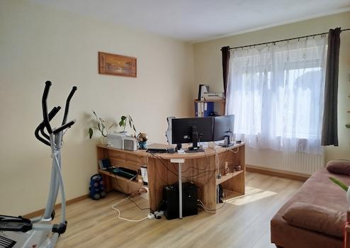 Dank seiner günstigen Aufteilung bietet das Mehrfamilienhaus ein geräumiges Wohnzimmer, eine Küche, eine davon abgehende Speisekammer, drei geräumige Zimmer mit separaten Eingängen, ein Badezimmer mit Badewanne, eine separate Toilette, einen Flur und einen Keller.