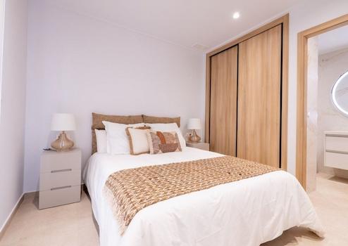 Es gibt Wohnungen mit drei Schlafzimmern, zwei Bädern und großen Terrassen sowie exklusive Penthäuser mit Jacuzzi und Außenküche auf der Sonnenterrasse und Wohnungen im Erdgeschoss mit Garten und alle mit Tiefgarage.