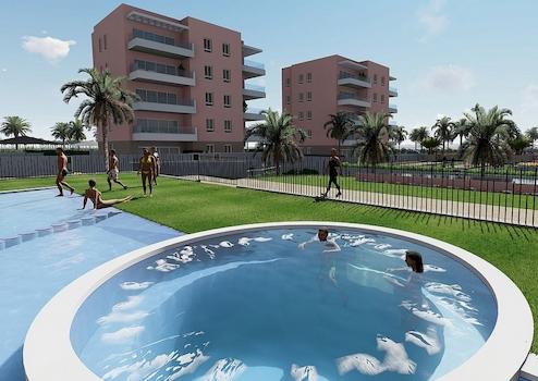 Diese neue Wohnanlage wird über große Gemeinschaftsbereiche verfügen, in denen Sie sich im großen Sommerpool oder im beheizten Spa entspannen können, Kinder werden sich im "Vista Park" vergnügen und die sportlicheren unter Ihnen werden einen Fitnessbereich mit biologisch-gesundheitlichen Geräten und ein "Putting Green Golf" zum Üben Ihres Schwungs vorfinden, alles in einer geschlossenen Anlage mit großen und gepflegten Grünflächen, die jeder genießen kann.