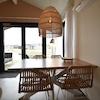 Das Wohnzimmer überzeugt mit einer sichtbaren Balkendecke, die eine gemütliche Atmosphäre schafft. Durch die großen Fenster und die Terrassentüren ist der Raum lichtdurchflutet und bietet einen wunderschönen Ausblick. Der Essbereich lädt zu gemeinsamen Mahlzeiten in entspannter Umgebung ein.