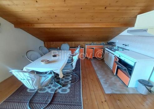 Dachgeschoss: grosses Schlafzimmer, Wohnzimmer mit Küche und Essbereich, Badezimmer und überdachte Terrasse