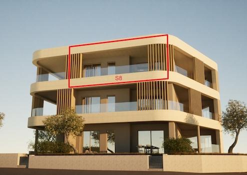 Dieses moderne Gebäude mit insgesamt 9 Wohnungen unterschiedlicher Größe, mit zwei oder drei Schlafzimmern, ist mit besonderem Augenmerk auf natürliche Belichtung und offene Räume konzipiert. Glasflächen und überdachte Balkone schaffen eine Verbindung zwischen Innen- und Außenräumen und lassen Tageslicht den Wohnraum bereichern.