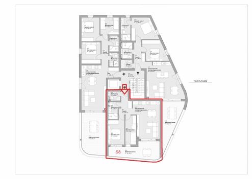 Das Apartment S8 befindet sich im zweiten Stock des Gebäudes.