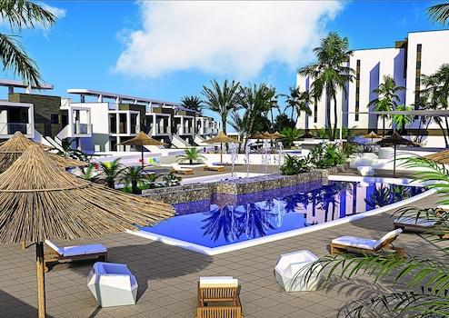 Appartements mit 2 Schlafzimmern und 2 Bädern in abgeschlossener Anlage mit Gemeinschaftspools nur 600 m vom Strand