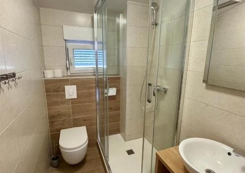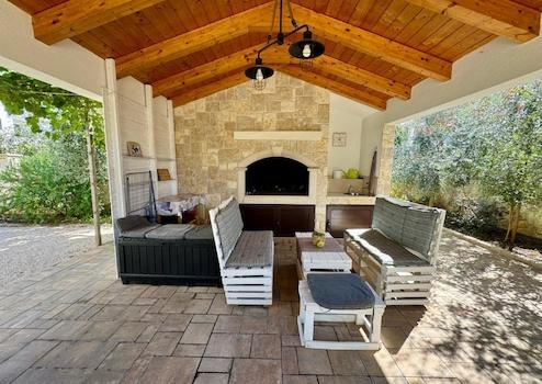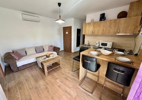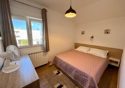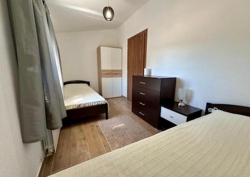 Im Erdgeschoss des Hauses befindet sich eine Zweizimmerwohnung, die die Eigentümer für private Zwecke nutzen. Die Wohnung besteht aus einem kleinen Flur, zwei gemütlichen Schlafzimmern, einem Badezimmer und einem geräumigen Wohnzimmer, das mit der Küche und dem Esszimmer verbunden ist. Vom Wohnzimmer aus gelangt man auf die überdachte Terrasse, die in den wärmeren Monaten zusätzlichen Platz zum Genießen bietet. Das Erdgeschoss ist zudem funktional mit einem überdachten Grillplatz und einer Sommerloggia verbunden, was zusätzlich zur Aufenthaltsqualität beiträgt.