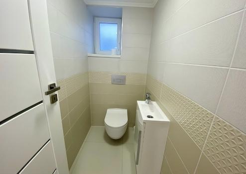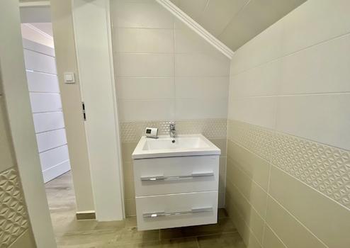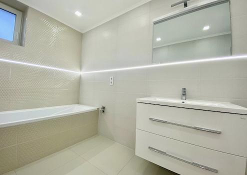 - fürdőszobában új minőségi burkolatok, és szaniterek, fürdőkád és tusolókabin is lett beépítve, igényes modern