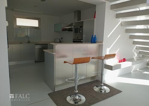 Auf ca. 190 m² Wohnfläche, verteilt auf zwei lichtdurchflutete Ebenen, erwartet Sie ein durchdachtes Raumkonzept mit offenem Wohn- und Essbereich, hochwertiger Designküche und fugenlosem, poliertem Betonboden, der ein modernes, barfußfreundliches Wohngefühl schafft.