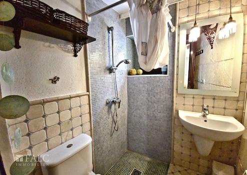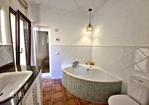 Im obersten Stockwerk befindet sich ein weiteres Schlafzimmer mit Waschgelegenheit (Toilette und Waschbecken) – ideal als Gästezimmer, Home-Office oder Atelier. Der direkte Zugang zur Dachterrasse eröffnet einen spektakulären Blick über die Dächer von Artà und bis hin zur umgebenden Hügellandschaft. Ein magischer Ort, der jeden Sonnenaufgang und Sonnenuntergang zu einem Erlebnis macht.