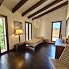 Bereits beim Betreten des Hauses spüren Sie den einzigartigen Charakter dieses Objekts. Der repräsentative Eingangsbereich mit seiner hohen Decke und geschmackvollen Details wirkt einladend und großzügig. Im Erdgeschoss befinden sich zwei gemütliche Schlafzimmer – jeweils mit eigenem Bad, eines davon en suite. Die stilvolle Ausstattung schafft eine Atmosphäre der Ruhe, ideal für Gäste oder als separater Rückzugsort.
