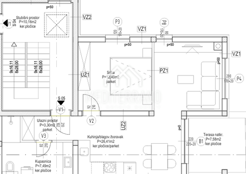 The total living area is m², with an additional 7.58 m² terrace. The apartment also includes two parking spaces — one of which is covered — as well as a storage room in the building’s basement measuring 6.97 m².