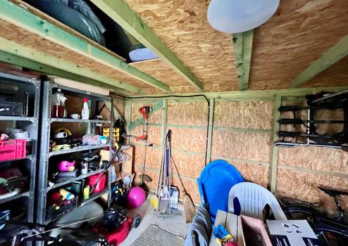 Im ruhigen, gepflegten Garten erleichtert die automatische Bewässerung die Pflanzenpflege und der Gartenschuppen bietet eine praktische Lösung zur Aufbewahrung der Gartengeräte. Das Rasenmähen erfolgt durch einen Mähroboter, dieser ist ebenfalls im Preis inbegriffen!