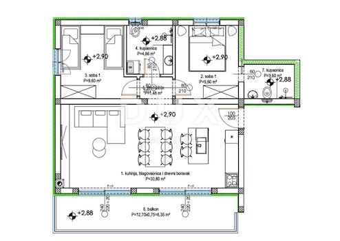 Wir präsentieren Ihnen eine neu gebaute Wohnung in attraktiver Lage in Umag, ideal für junge Familien, die einen sicheren, modernen und funktionalen Wohnort suchen. Diese Wohnung im ersten Stock des Gebäudes verfügt über 56,14 m², mit einem überdachten Balkon von 12,70 m². Die gesamte berechnete Fläche der Wohnung beträgt 70,48 m², einschließlich eines Abstellraums von 3,28 m². Hervorragendes Preis-Leistungs-Verhältnis für einen Neubau. Hier werden Qualität und modernes Design zu einem Preis angeboten, der für einen Neubau in diesem Teil Istriens äußerst wettbewerbsfähig ist. Das bedeutet mehr Platz und Komfort für Ihre Familie, ohne Kompromisse bei der Lebensqualität einzugehen. Funktionale Aufteilung Die Wohnung verfügt über zwei Schlafzimmer, eines davon mit eigenem Bad, ein weiteres Badezimmer und ein geräumiges Wohnzimmer mit Küche und Essbereich – alles auf Komfort und Funktionalität des Alltags ausgerichtet. Sichere und ruhige Lage Die Wohnung befindet sich in einer ruhigen Gegend, ideal für die Kindererziehung, mit wenig Verkehr und viel Grün. Nahe an allen Annehmlichkeiten Schulen, Kindergärten, Einkaufsmöglichkeiten und öffentliche Verkehrsmittel befinden sich in unmittelbarer Nähe, was den Familienalltag erleichtert. Zwei Parkplätze und ein Abstellraum Zur Wohnung gehören zwei private Parkplätze und ein Abstellraum im Erdgeschoss mit 3,28 m², der für zusätzlichen Platz und Komfort sorgt. Angenehmes Wohnen das ganze Jahr über Klimaanlage und Fußbodenheizung garantieren Komfort zu jeder Jahreszeit. Zusätzliche Vorteile Überdachter Balkon mit Meerblick – der perfekte Ort für Familientreffen oder zum Entspannen nach einem anstrengenden Tag. Hochwertige Konstruktion und moderne Materialien – langfristige Sicherheit und geringer Wartungsaufwand. Hervorragende Investitionsmöglichkeit – die Wohnung ist auch zur Vermietung oder als zweites Feriendomizil attraktiv. Dies ist eine Chance für junge Familien, die mehr als nur eine Wohnung wollen – sie möchten ein Zuhause, in dem sie Erinnerungen schaffen, Sicherheit genießen und alles Wichtige in Reichweite haben. Für weitere Informationen und zur Vereinbarung eines Besichtigungstermins kontaktieren Sie uns bitte.