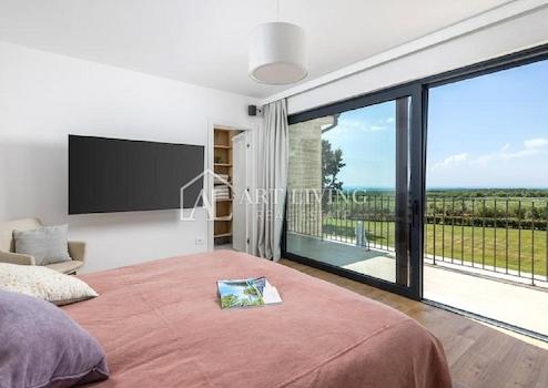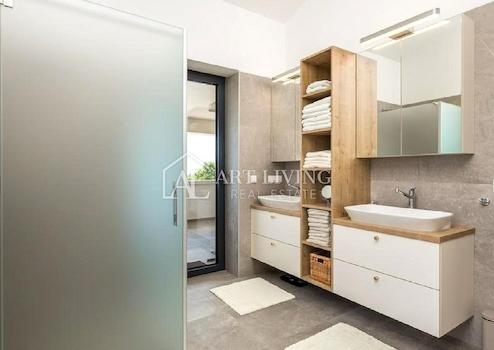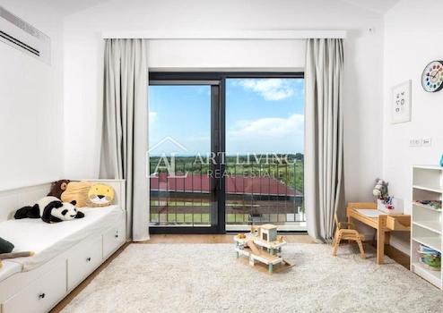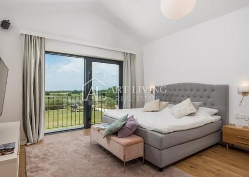 Über eine Innentreppe gelangt man in den ersten Stock, wo sich vier Schlafzimmer befinden: zwei Schlafzimmer mit Gemeinschaftsbad, das Hauptschlafzimmer mit eigenem Bad, Ankleidezimmer und privater Dachterrasse sowie ein weiteres Schlafzimmer mit eigenem Bad und privatem Balkon mit Meerblick. Im ersten Stock gibt es auch eine großzügige Gemeinschaftsterrasse mit Blick auf das Meer und die schöne istrische Landschaft.
