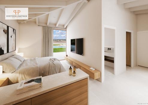 Das geplante Bauprojekt umfasst ein einstöckiges, modernes Einfamilienhaus im ländlichen Stil mit Swimmingpool. Es bietet ein großzügiges Wohnzimmer, ein Esszimmer und eine Küche. Das Haus verfügt über zwei Schlafzimmer mit eigenem Badezimmer sowie zwei weitere Schlafzimmer, die sich ein gemeinsames Badezimmer teilen. Alle Schlafzimmer sind mit praktischen Einbauschränken ausgestattet und bieten direkten Zugang zum Garten.