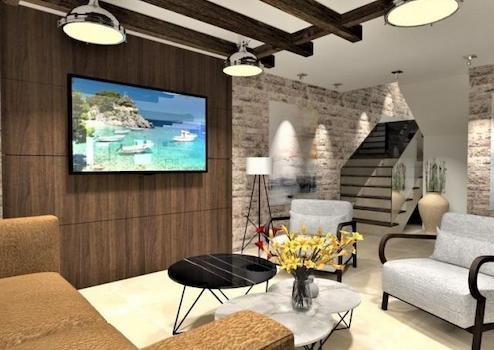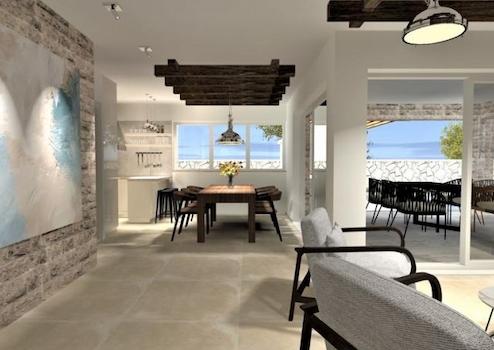 Im ersten Stock des Hauses befindet sich der Schlafbereich mit drei Schlafzimmern, von denen zwei Zugang zu einer romantischen Terrasse mit Teilblick auf das Meer und die das Haus umgebende Natur haben. Das Hauptschlafzimmer verfügt über ein eigenes Badezimmer, während sich die beiden anderen Schlafzimmer ein gemeinsames Badezimmer teilen. Die Villa zeichnet sich durch hochwertige Bauweise und Ausstattung aus, Fußbodenheizung ist auf einer Wärmepumpe installiert, Vorbereitung für Sonnenkollektoren, Klimaanlage sowie hochwertige Schreinerei, Keramik und Sanitärkeramik. Der Raum wird von einem rustikalen Landhausstil mit Holzbalken an den Decken, Stein an einigen Teilen der Wände und sanften Erdfarben dominiert, die sich durch die gesamte Villa ziehen.