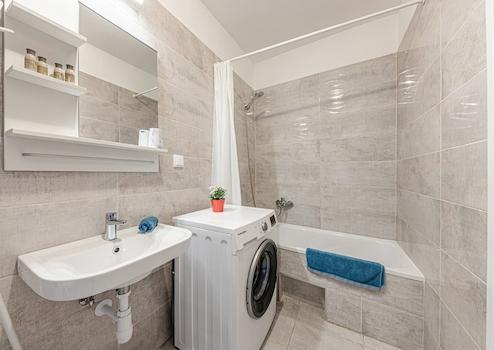 Ideale Raumaufteilung: Die Wohnung verfügt über zwei Schlafzimmer, ein Badezimmer und ein separates WC sowie ein Wohnzimmer mit amerikanischer Küche, die viel Platz für den Alltag und die Unterhaltung bietet. Die hellen Räume und das moderne Design machen die Immobilie sowohl für Bewohner als auch für Mieter attraktiv.