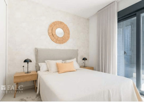 Die neue Anlage bietet 2- und 3-Zimmer-Apartments mit jeweils zwei Bädern . Alle Apartments der ersten Phase verfügen über großzügige Terrassen und einen herrlichen Blick auf das Mittelmeer. Die Ausrichtung ist nach Südosten ausgerichtet.